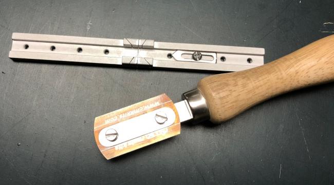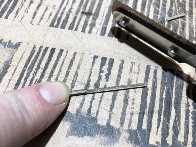 Then I measure the different pieces required (9 long studs, 2 studs above the windows, 6 short ones below the windows...) As per the instructions I cut them a bit long and then use the true sander to get a good fit. I deviate from the instructions in that I make one of each and then use my new razor saw to cut copies. I hold the board that is the correct length on top of the board to be cut and then using the top board as a guide make an exact copy. Keep a copy of the long studs and some of the fire blocks to use as templates for the other walls.