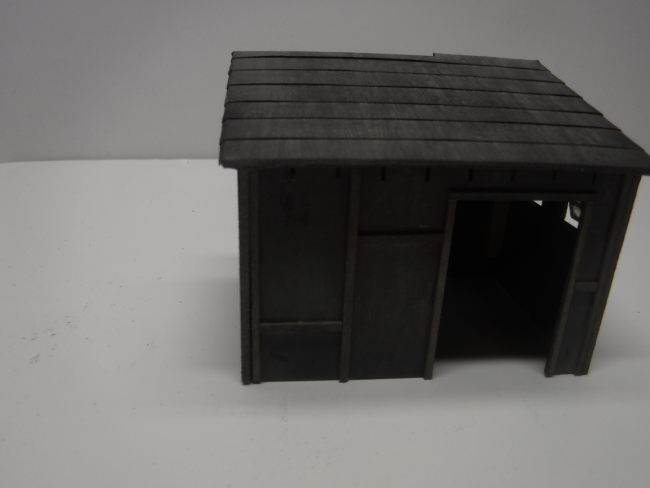 Nothing new...just a shot of my roof for the repair shop...….sprayed with matte black...then a dusting of Krylon Cement paint......it has the color I wanted...and the texture.....weathering will come later....