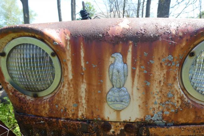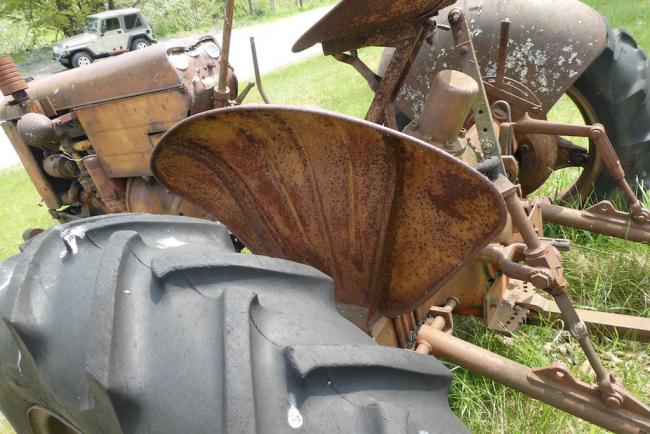 It is also interesting to note the weathering patterns on the tractor hood and fenders. This tractor must have been parked in the same spot for many years to achieve such a distinct weathering pattern.
