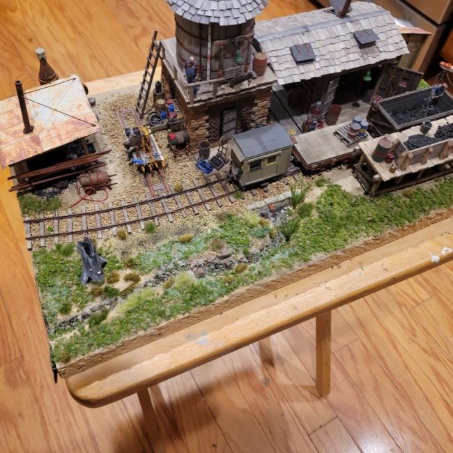 Heres a few actually bad shots of the Water Tank Diorama....still have a lot to finish and weather....next week will be here quick.....The blacksmith shed and coal dock are scratch built....slight rearrange due to the way it will live on the layout....