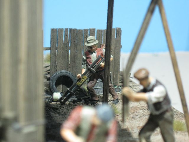 I'm getting down to the final details. Going to build a pile of pallets for the other side of the fence then put down a final ground cover. Finish another figure or 2. Put up some signs etc.