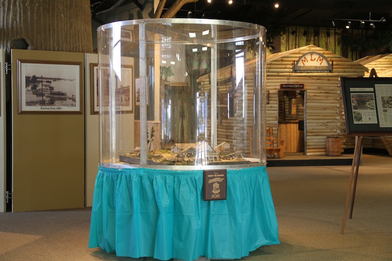 A little over a month ago, a small museum in Clinton, Iowa asked me if I would loan them my Twin Mills diorama for a 3-6 month run. Brett advised me to make sure they have a good amount of insurance--which they do, and to make sure it's well protected from curious visitors. After meeting with the staff, they went ahead and fabricated a huge plexiglass case and display stand for it. Right now, it's on display at the front of the museum when you walk in. They had an outdoor lumberjack festival a few weeks ago and about 2,000 people got to see it. The website is www.thesawmillmuseum.org I went back yesterday to check on it and to change the battery for the lights and snapped of few pictures. Take a look: