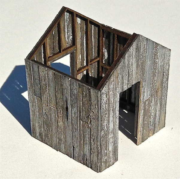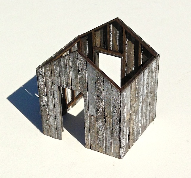 Hi Mike, great work on this little gem. not only is the peeling paint really, really, good the base wood color and weathering makes it. Haven't tried the corrugated roofing treatment yet but admire the results you're getting. Following closely........ Ken