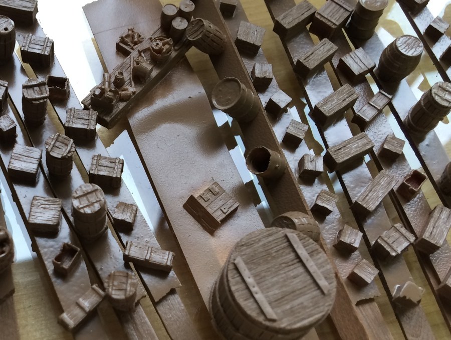 Maybe this is a little more in the ball park . . . by the way, I love how I can take a picture with my iPhone, then sit down and by the time I pick up my laptop it is automatically here waiting for me to edit! A National Geographic photographer told me he does all his photography with his iPhone now. Can you imagine that? In retrospect, looking at photos of my work, I see I have not been as subtle as instructed and my weathering is more so than the other build logs I am following for guidance. My shipyard may end up looking a bit more aged . . . .