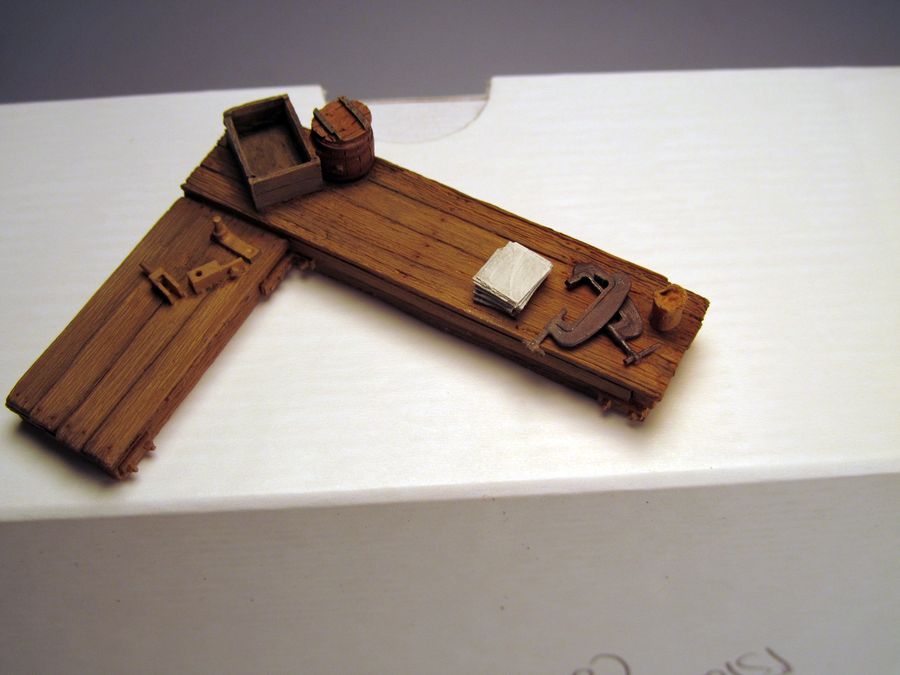You can see (I hope) the nice defintion between boards and that the top has a nice wood tone to it. This is one of Bretts new castings where a lot of details will be added later so much of this will be covered but to me it's important to model even what you might not see to give a depth and richness to the casting.