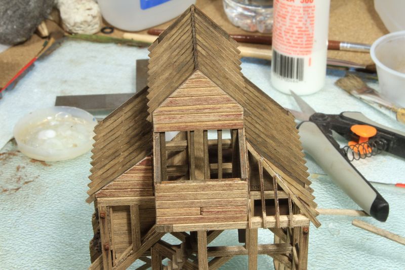 With this done, the tipple house is ready to attach to the top of the bents. More to come! Bill