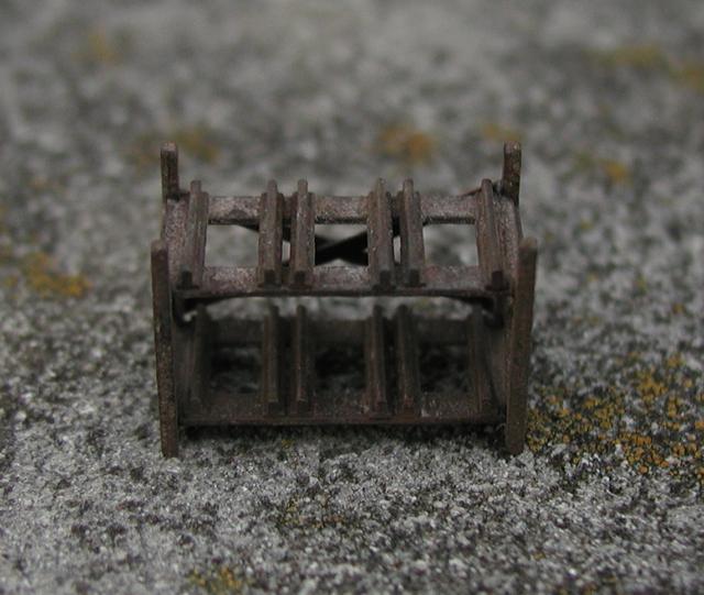 Here is the finished Oil Drum Rack. I decided to first feature it without any oil drums to highlight the wonderful detail Brett came up with here. This was so easy to construct with the laser cut framing and detailed assembly instructions. I primed with brown and then rusted fairly heavily. I will then decide how many drums will go on the rack then add some oil grunge appropriately, then plant in the scene along the side of the Welding Shop.