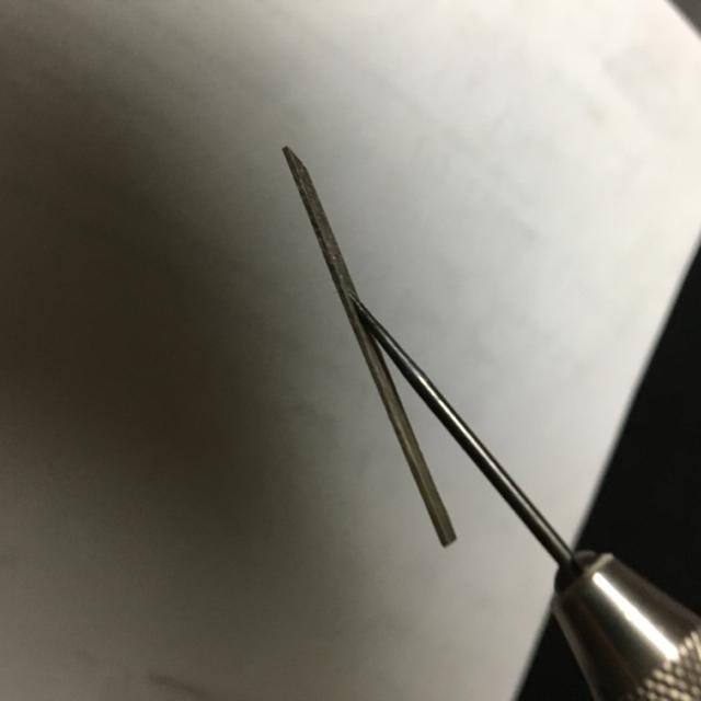 I work my nail holes in two main ways. The first is just a straight nail hole. My nail hole tool of choice is a fine pointed scribe end placed in a pin vice. My opinion...never use a pounce wheel to make nail holes. Firstly they are only used for nail holes uniformly applied in a line, the tool makes holes that are not round, and they are much to uniformly spaced.