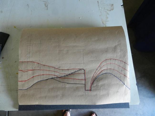 I then used carbon paper and a pin wheel to transfer the land formation to the 1/2" sheets of Styrofoam.