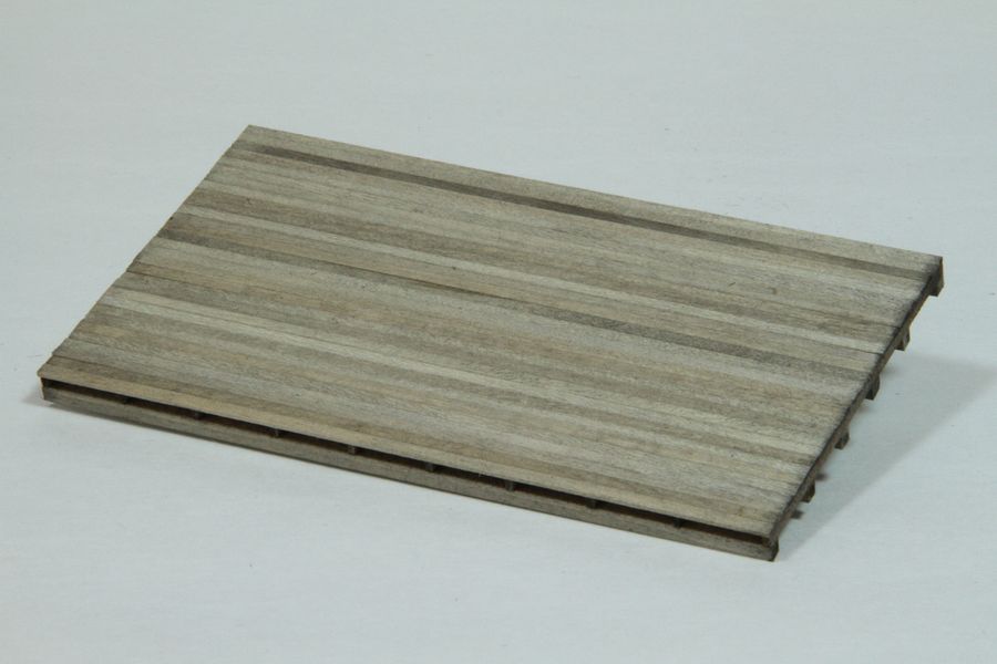 Then, I built the sorting platform. Same construction technique as the main floor, but I weathered it differently. By looking at the pictures, it seems the platform is 100% exposed to the weather as opposed to the previous floor which at least had a roof over it. With that in mind...no chalk coloring; just the colors from the stain soaking, textured with a brush folowed by steel wool and ink: