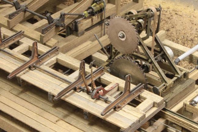 The machinery in the O scale sawmill is as close to art as you can get. The accuracy and detail are stunning. The boiler and steam engine provide power to the husk saw, log carriage, live rolls and log turner, and also the cut off saw and edger. Assembly of all these items is nothing difficult. However, the parts are identified right off of the machinist's drawings. If you're not familiar with working from mechanical drawings (like me!) it's not a bad idea to label and organize all the components.