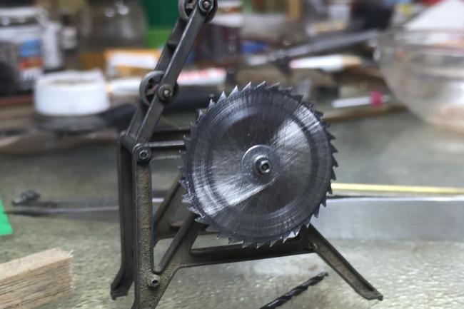 So, I opted to model mine like the double blade saw pictured above: a large blade on the bottom and a smaller blade on top. Not perfect, but a plausible solution.