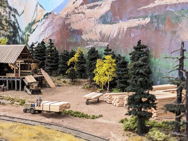 I have been working on the scenery for the sawmill area over the past few months and more or less have finished it in this area.