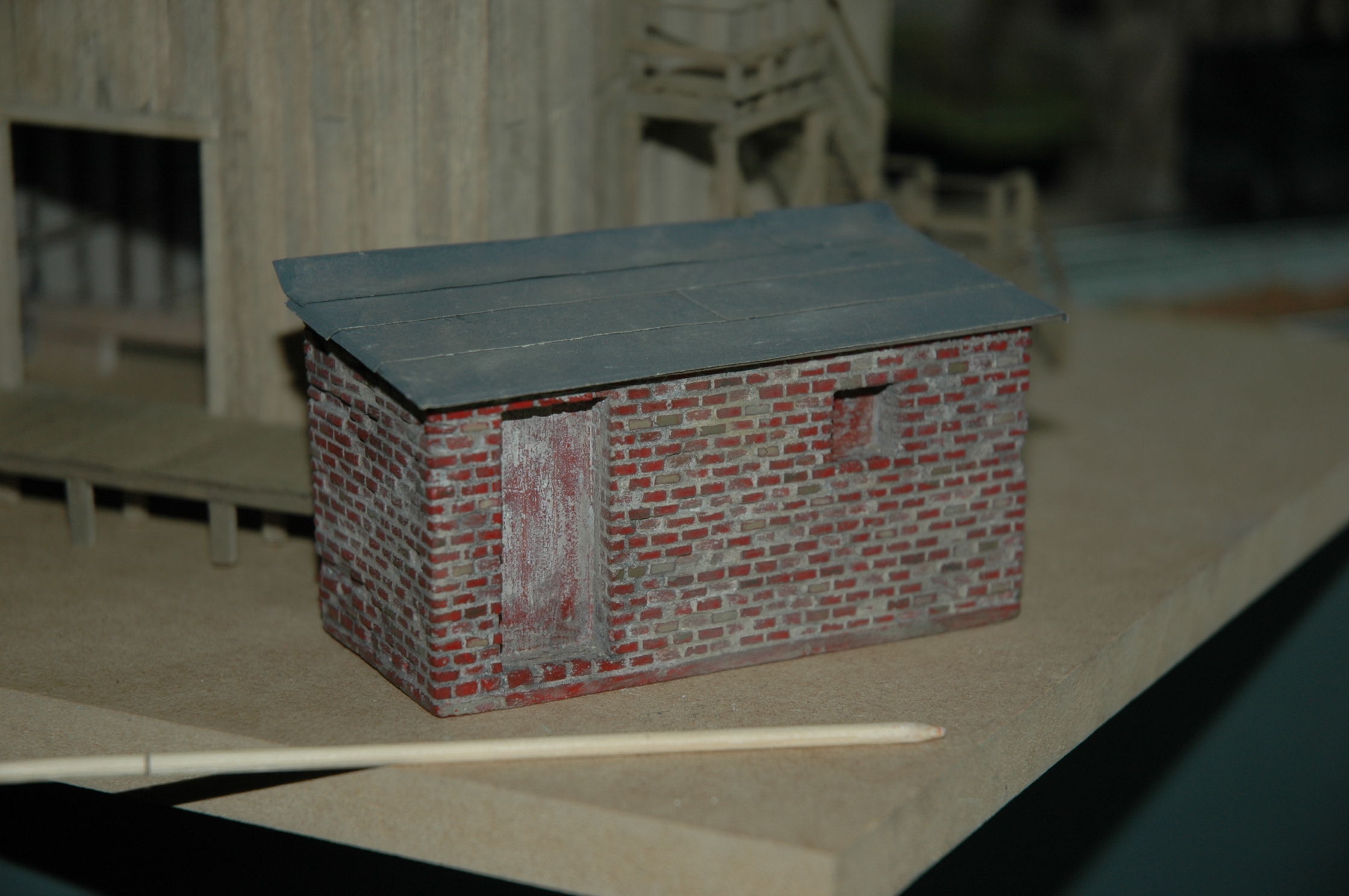 The repair shed with some of the details Glued down. More will be added when I attach it to the base.