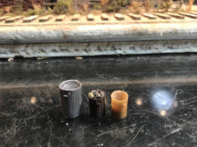 Gotta love those racoons. That was worth the effort to empty the trash can. One more reason we are waiting for Brett's 3D printed junk to be available in HO too.......Rick