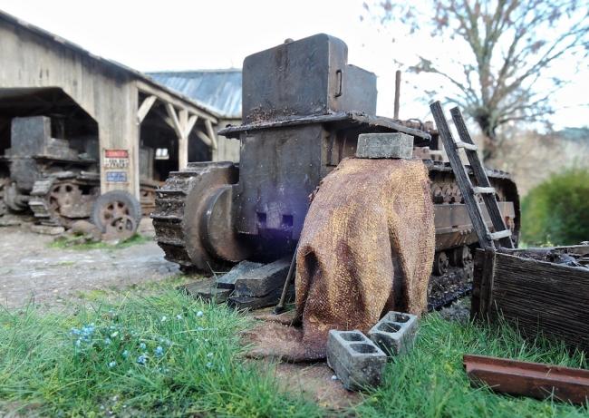 • Robert, what a spectacular diorama you put together. So many good things its hard to comment on them all! A few things that struck me...your roof work is outstanding. The Tractor Repair Shed has a very busy roof design and your work here is just amazing and all the materials and textures just flow together seamlessly. I'm drawn to the roof...but no for one thing, it has a warmth and homogenicity about it that works.