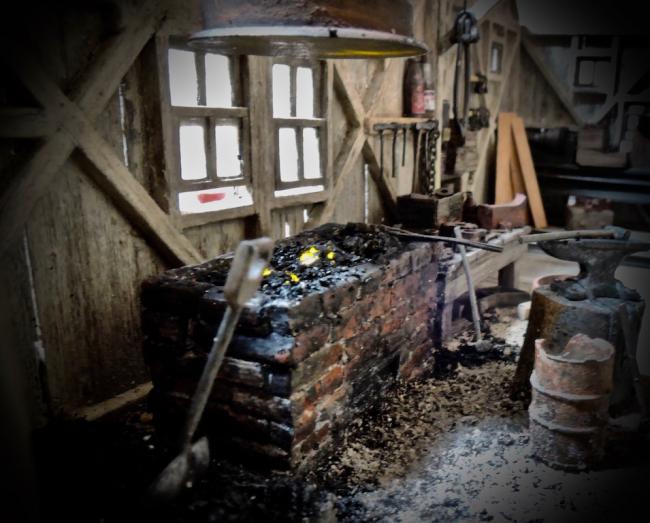 • Before I can start with the roof, I am doing the 'interior decorating' :blush: so here is just an impression of the atmosphere in the forge. Soon much more of course...
