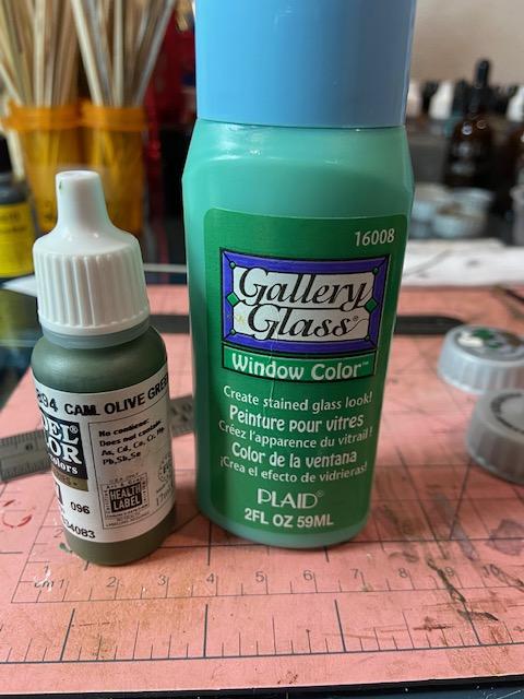 Finally, there are some bottles that will go on a shelf. I wanted a green glass look and Bill Obenauf taught me to use gallery glass to get the perfect look. The green color can be darkened by adding in a little dark green.