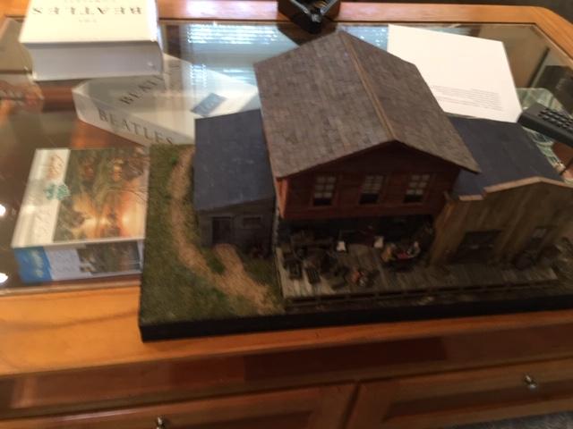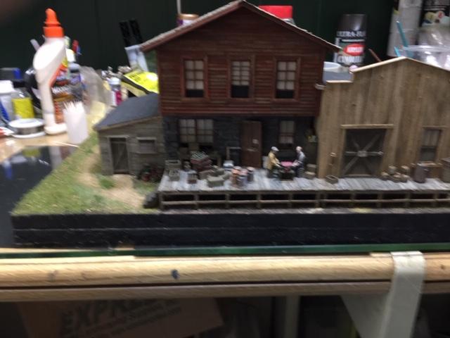 • weil i took the plunge and epoxied the structures to the base. that was really all the scenery i could do until the structures were secured. tomorrow night i'll start playing around with details again.