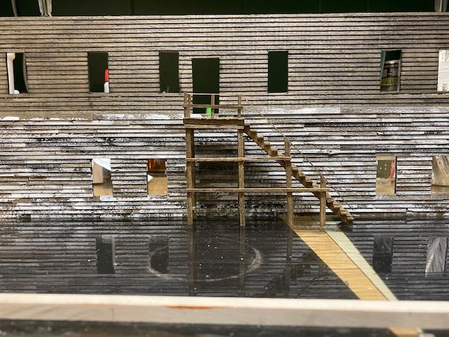 i did some of the boards with black chalk to show the rear in disrepair. i'll end up dusting it up more and hit it with a/i once the windows and doors are in.