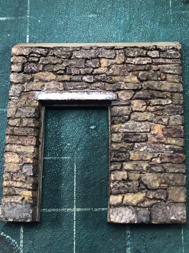 Thanks guys. Just a lot of walls yet to go. Ken, it is light glare on the lintel. It is actually light grey chalk. Phil, the technique is actually very easy, just tedious. I found the rubbing with the finger brought out the highlights which made it look like stone, not paint.