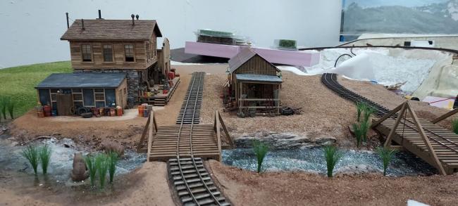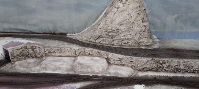 There is some more landscaping in progress (tunnel on the left), but you get the general idea. Hopefully within the next couple weeks, I can complete melding in the upper landscape and paint the rest of the cliff rocks.