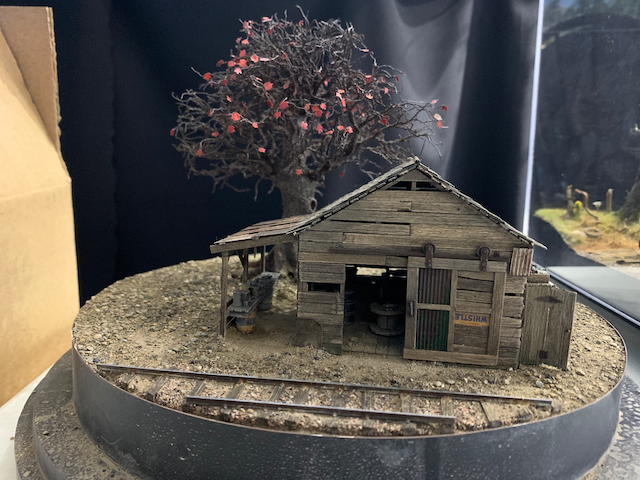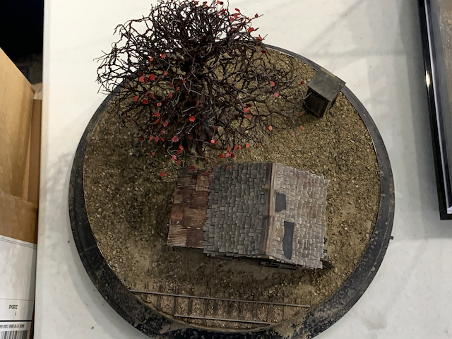 I can't remember who asked me if I was going to mount this on a Lazy Susan. At the time I said no but have changed my mind. It's not quite centered but working underneath a nearly finished diorama is a nerve wracking experience.