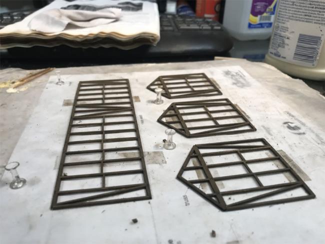 Luckily most of the smaller resin for this one is either done or started. (Notice how I store the stripwood as I build, a few pill bottles taped together with the label for each bag, makes things handy and easy access. Also powdered chalk in the lid of another with alcohol in the bottle for touch-up of wood ends etc.)