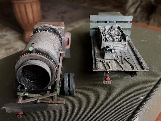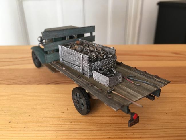 The two trucks from Penobscot Falls are about done. Just need to tie down the oil feed boiler. I'm thinking Randy would just lasso the thing with old rope off a schooner or lobster boat. Easy enough to borrow at night. Cheers, and thank you for your patience on these. Next one is in the works. And it is? Guess and you get a prize! Ask Nathan Lawson if I pay up. 1/48 scale modeling from the dark rainy Maine Coast!