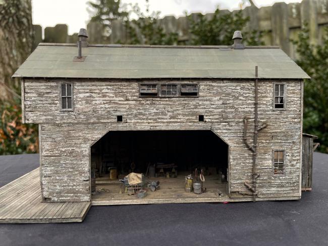 Right Bryan, I put the main building on a wood sill and it will have a stone foundation showing here and there. For variety, I put the shed on a brick foundation and added a wood floor, which of course can hardly be seen inside the slightly open door.